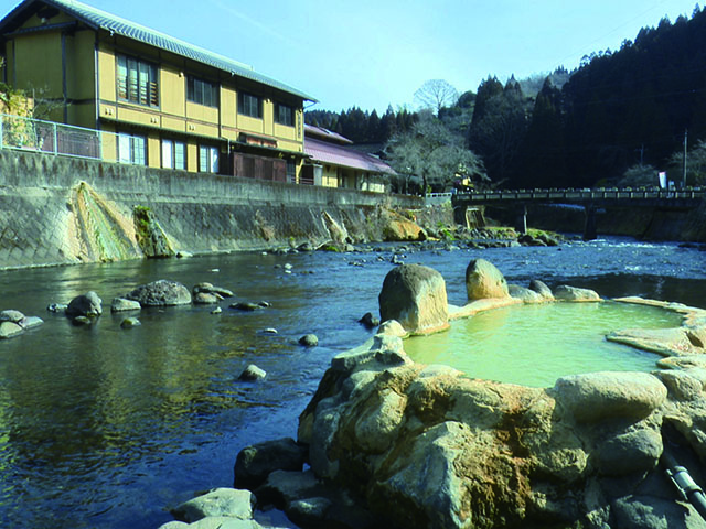 大分県久住山系の東のふもとにある直入町にあります。古くは、岡藩主中川久清公などに愛され、藩主・藩士の湯治に認めれていた古い温泉地。